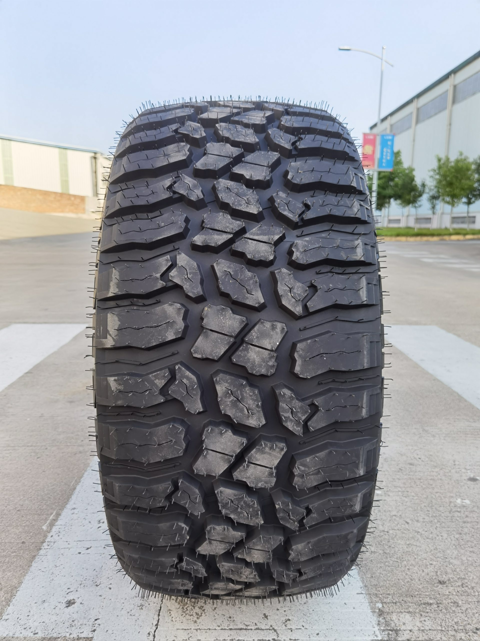 The special 3D solid pattern design is suitable to the cross-country vehicles on the non-pavement road with supreme anti-skid performance on muddy road, powerful traction force and extreme grip performance.